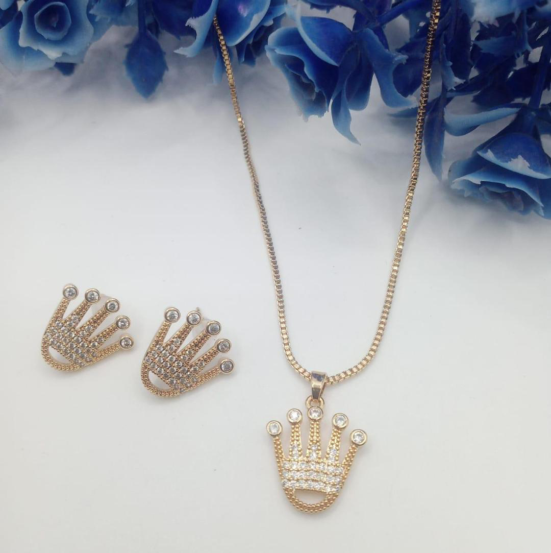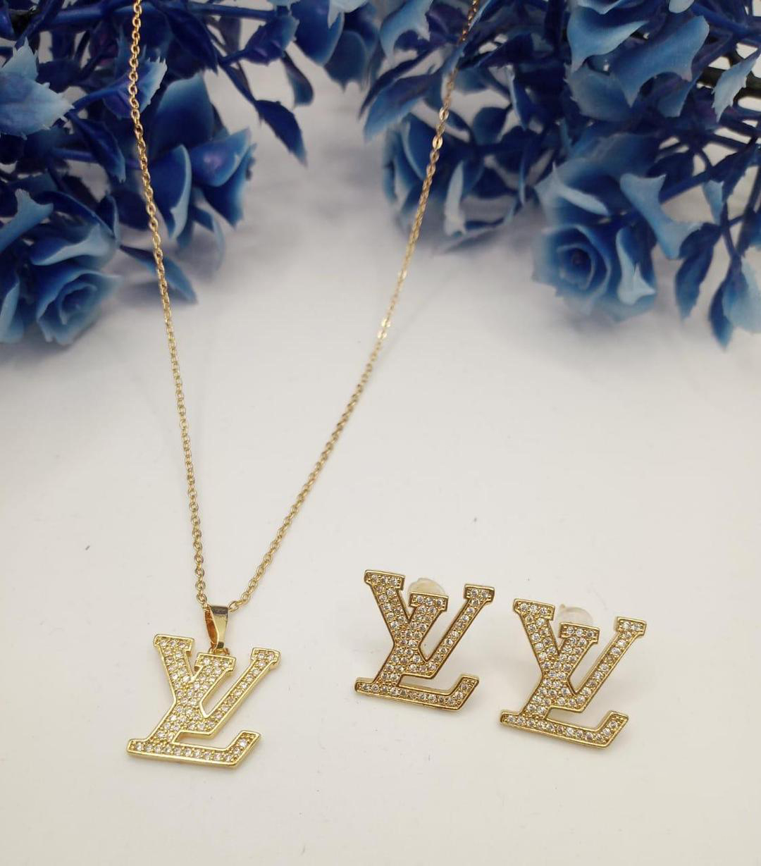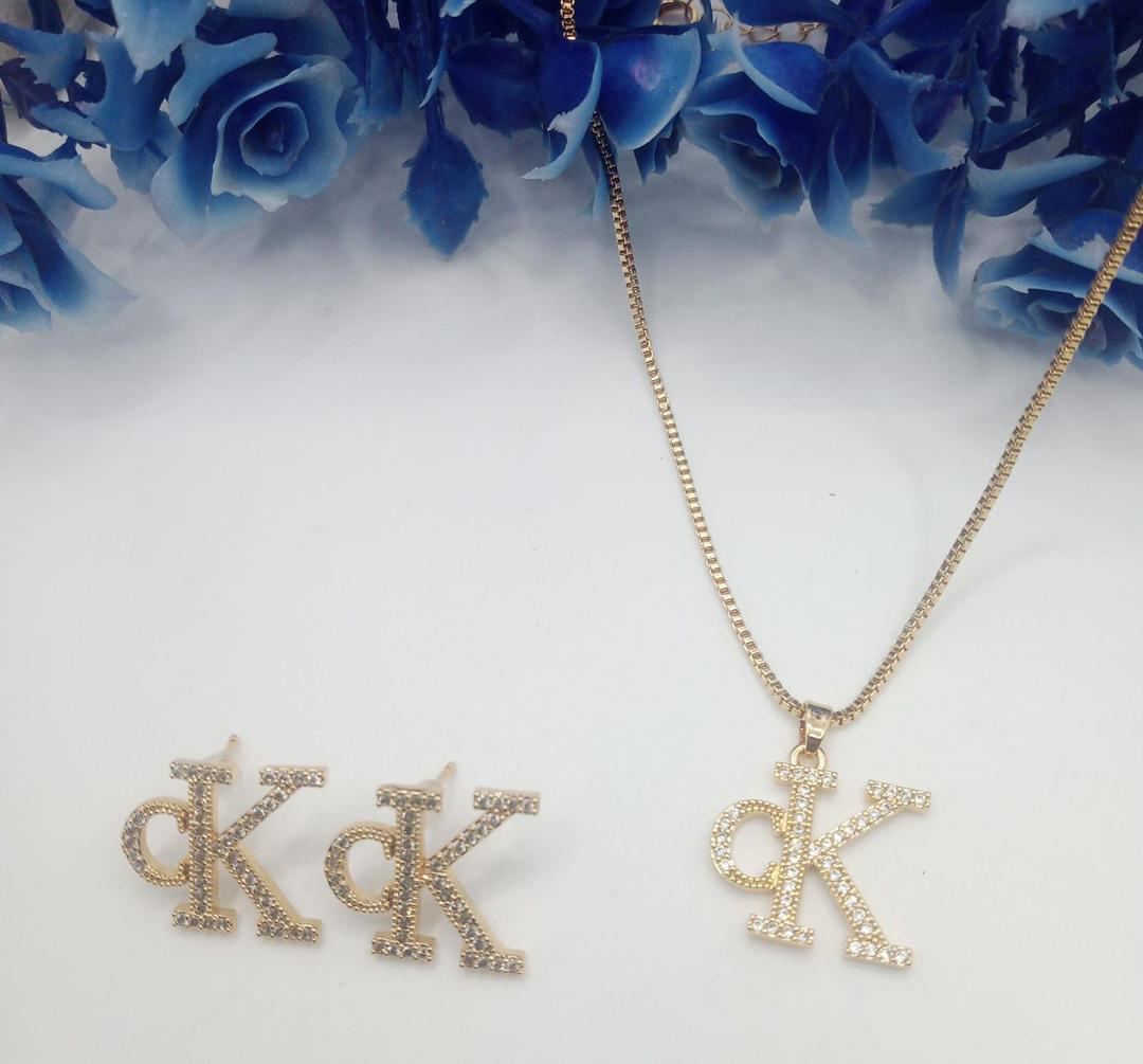 Alphabet Design Gold Plated Gemstone Necklace Set